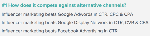 CTR, or click through rate, the action that a viewer takes by clicking on a link that leads to our clients website or social media page, is much higher with influencers than any other marketing channel.