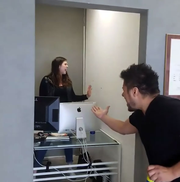 So what else happens in our office? One time our lead creative zig- zagged caution tape across the office door of our digital operations girl, as depicted below.