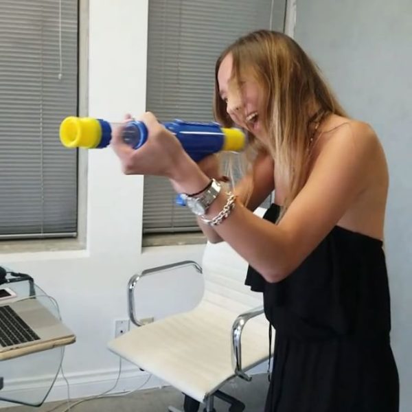 So what other silly happenings have occurred here at our advertising agency in Los Angeles? Well, well, well. We have shot each other with Nerf Guns and soft foam ball pop guns. This very toy gun was a Christmas gift from our boss to our lead creative, assumingly as a last- minute joking gift. However, it has actually been a great gift, and it has been used a million times, virtually every day in the office. Even the newest addition to our advertising agency team took a shot at it. Literally.