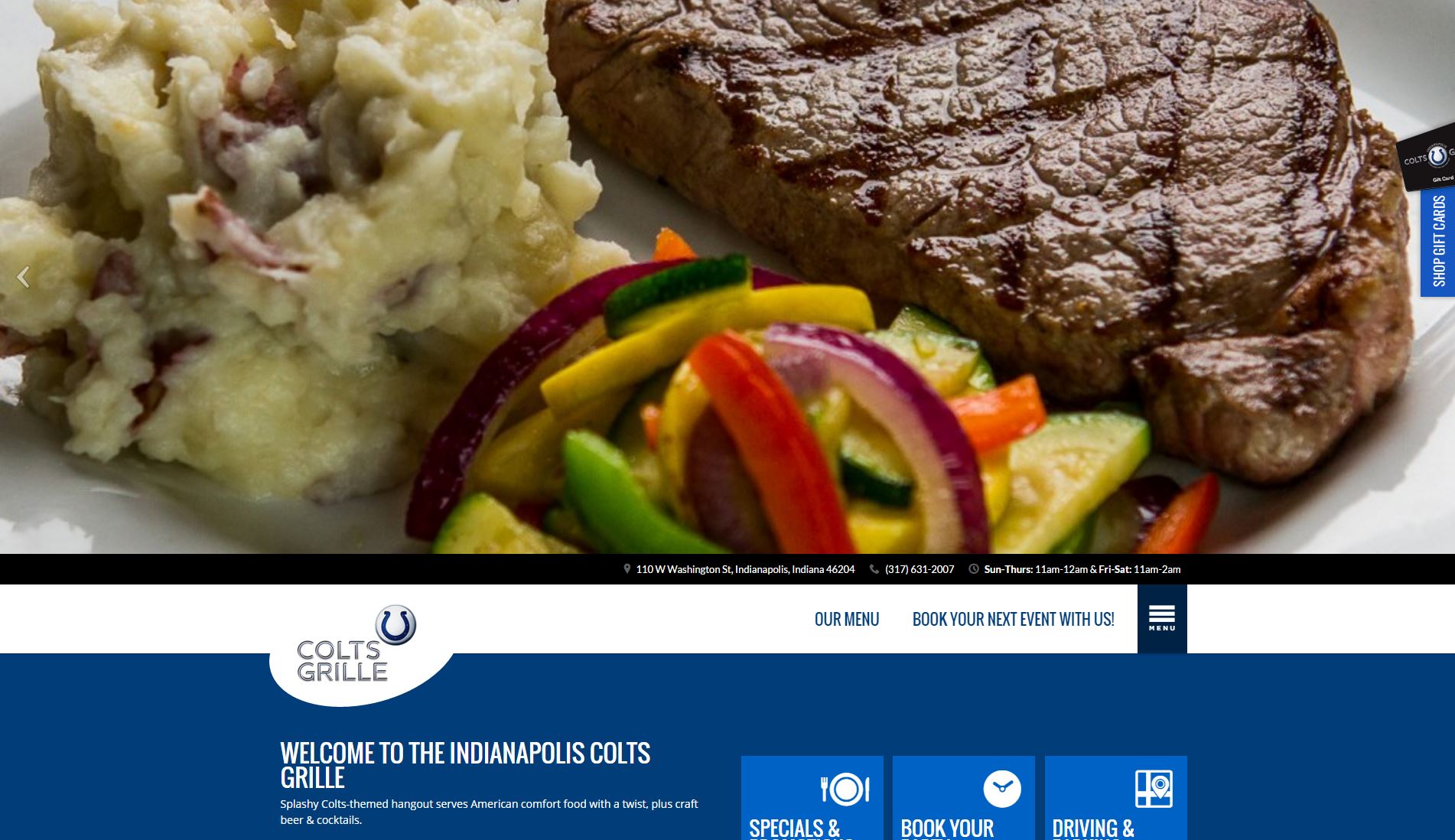 Vivid Candi custom branded, coded & developed coltsgrille.g3restaurants.com for our client, G3 Restaurants, a restaurant group in the mid-west with rights to the NFL franchise.
