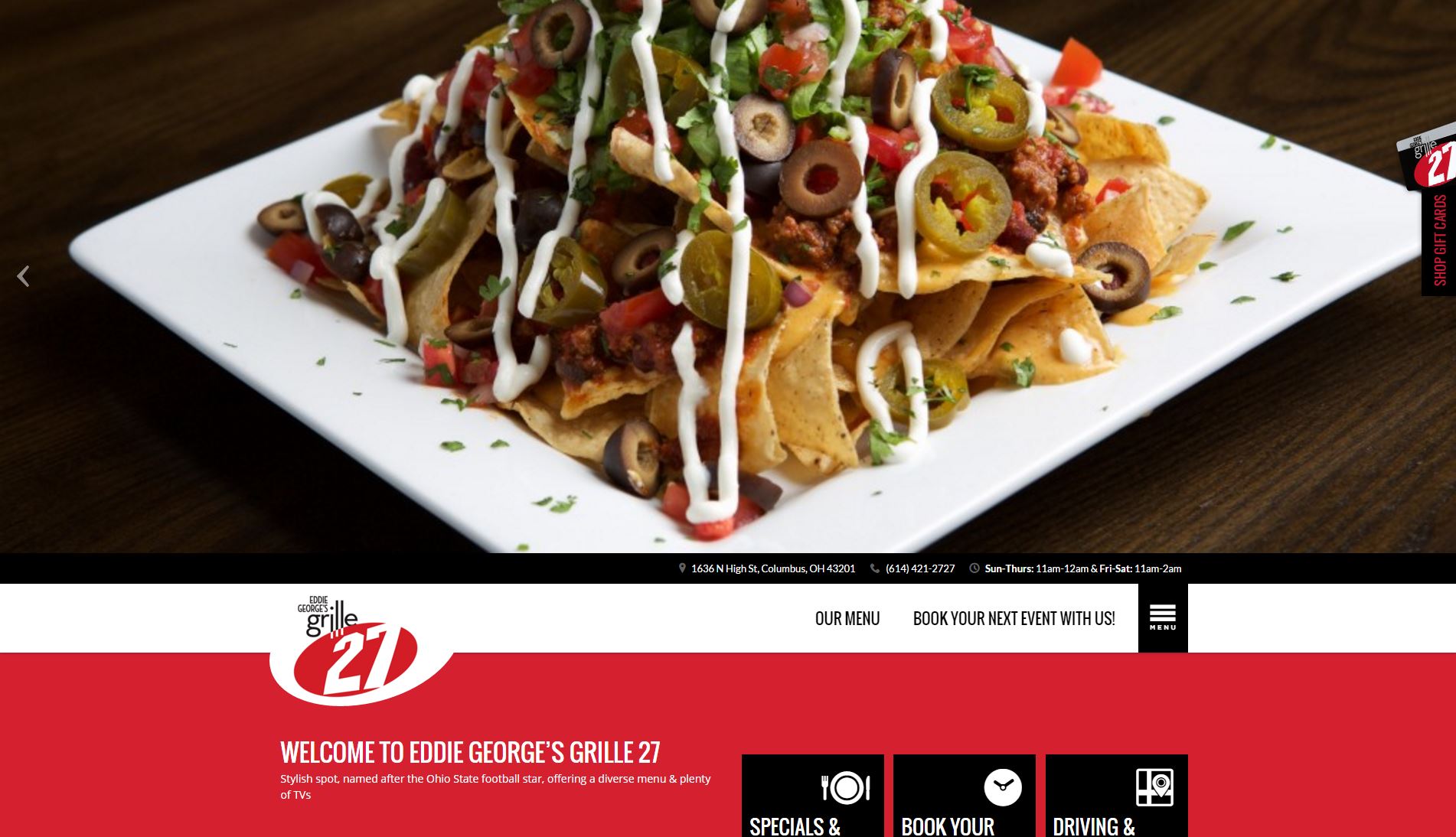 Vivid Candi custom branded, coded & developed eddiegeorgesgrille27.g3restaurants.com for our client, G3 Restaurants, a restaurant group in the mid-west with rights to the NFL franchise.