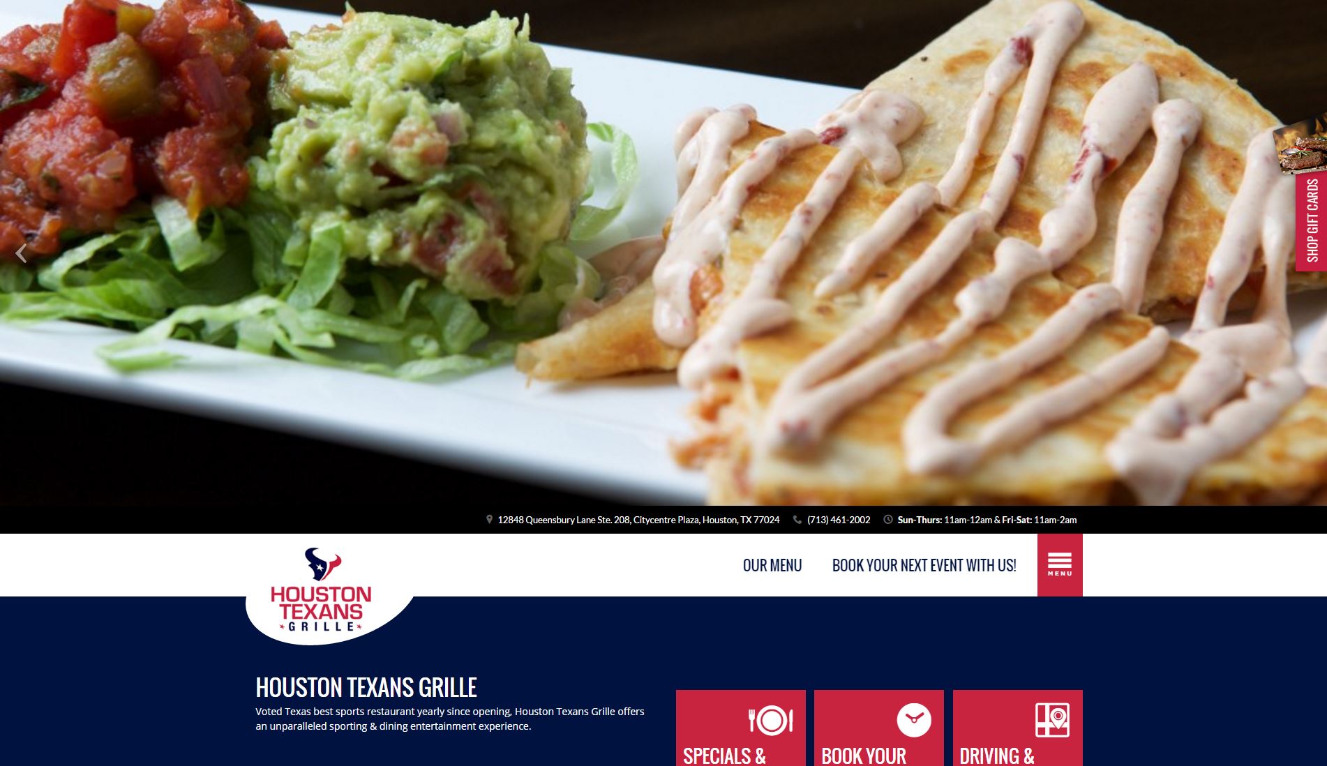Vivid Candi custom branded, coded & developed texansgrille.g3restaurants.com for our client, G3 Restaurants, a restaurant group in the mid-west with rights to the NFL franchise.