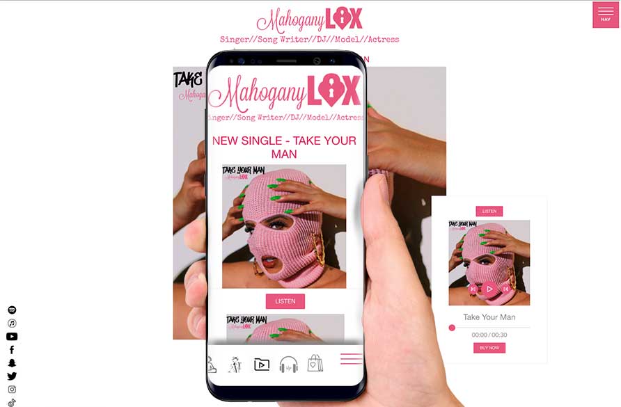 Vivid Candi custom designed, branded, coded & developed www.mahoganylox.com. This website features cutting edge modern web technology.